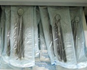 Dans la salle de stérilisation, isolée du reste de l’espace clinique, les instruments non jetables sont trempés dans un bain décontaminant, puis passés aux ultrasons et ensuite lavés dans un auto laveur (machine à laver à haute température utilisant des produits désinfectants, bactéricide et fongicide).