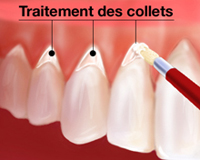 Ces deux méthodes de traitements sont souvent mises en œuvre en parallèle. Dans certains cas, on peut également envisager un recouvrement des collets par greffe de gencive.