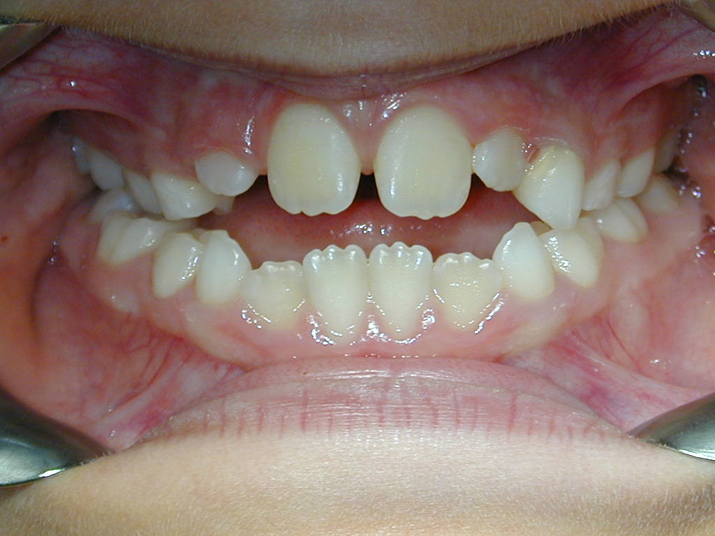 Visuels de droite : enfant de 10 ans présentant une béance des incisives.