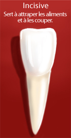 - 4 incisives qui ont un bord droit. Elles servent à attraper les aliments et à les couper.