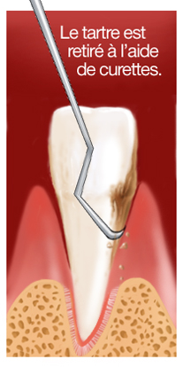 Le surfaçage (ou curetage) est la première technique envisagée pour traiter les parodontites.
